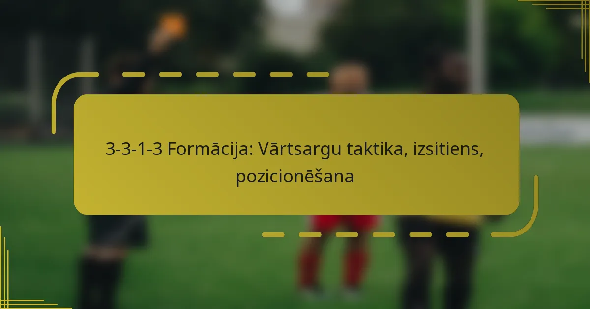 3-3-1-3 formācija ir taktiska izkārtojuma veids futbolā, kas uzsver spēcīgu viduslauka klātbūtni, vienlaikus saglabājot aizsardzības stabilitāti un uzbrukuma iespējas. Ar trim aizsargiem, trim viduslaika spēlētājiem, vienu spēles veidotāju un trim uzbrucējiem, šī formācija ļauj dinamiski pāriet no aizsardzības uz uzbrukumu. Pareiza attāluma, pozicionēšanas un kustības ievērošana ir izšķiroša, lai maksimāli palielinātu komandas efektivitāti un izmantotu iespējas laukumā.